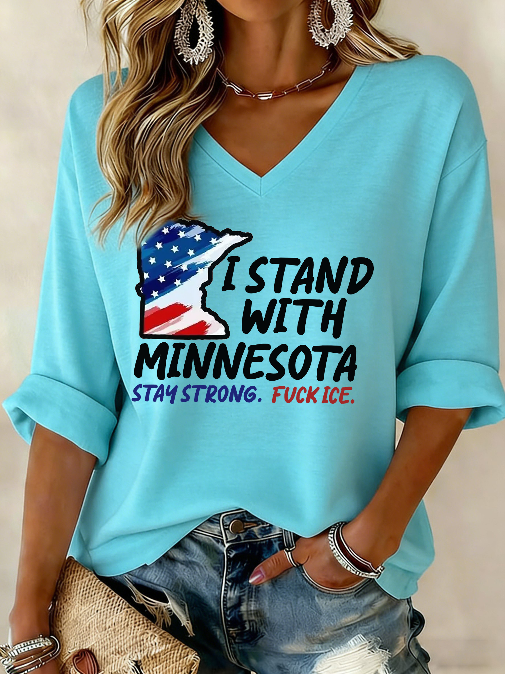 Women's I Stand With Minnesota Printed Waffle T-shirt