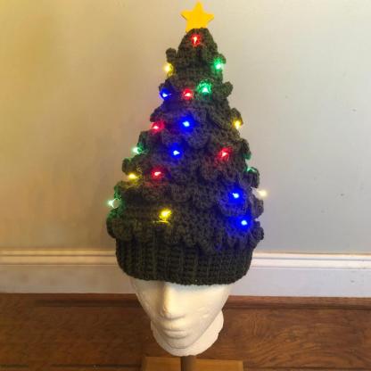 - Item includes:1 Illuminated Crochet Christmas Tree Hat